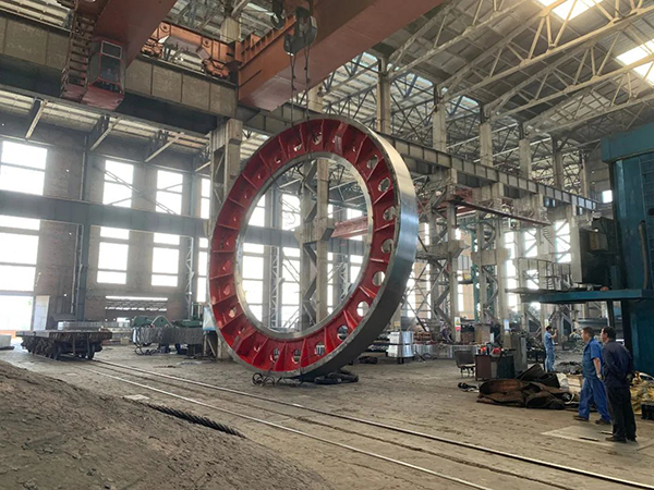 美卓公司來圖定制的φ8221大齒輪,材質(zhì):ZG45CrMo,是目前豫北地區(qū)生產(chǎn)蕞大磨機大齒輪,其質(zhì)量要求更是完全超過了國內(nèi)標準,要求UT、MT一級探傷。
