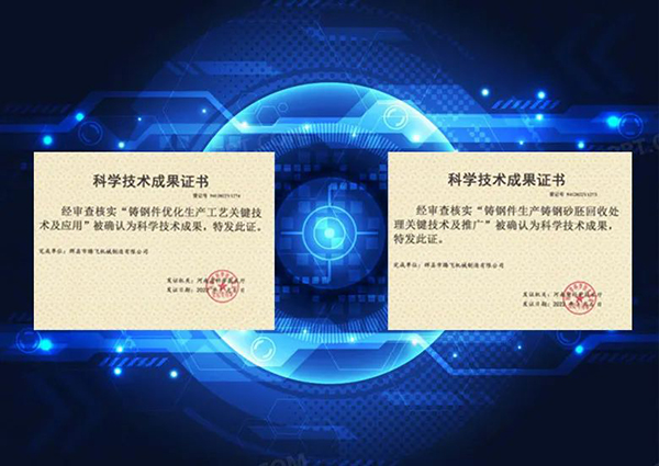 2022年7月6日騰飛鑄鋼再次獲得2項河南省科技成果。
