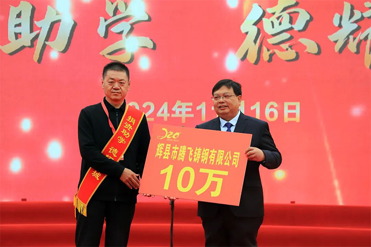 在這個意義非凡的日子里,我們公司的李總受邀出席了這場慶典。李總不僅作為嘉賓參與,更通過實際行動展現(xiàn)了對教育事業(yè)的支持與尊重——騰飛鑄鋼慷慨捐贈了十萬元人民幣,支持學(xué)校發(fā)展。